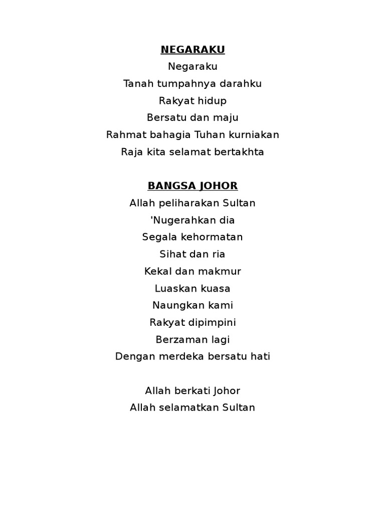 Negaraku Dan Bangsa Johor Lirik Lagu Pdf
