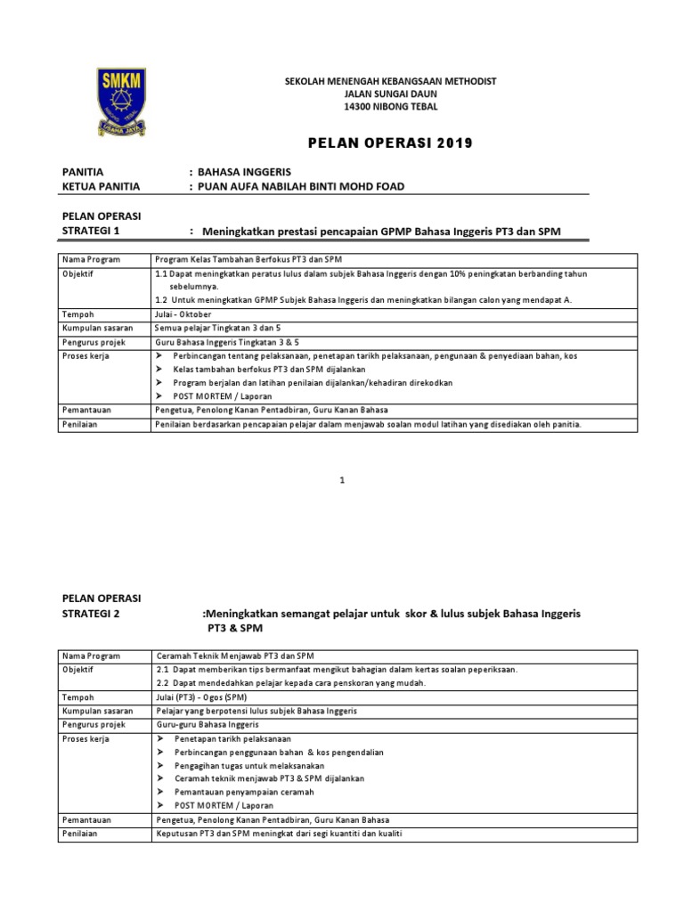 Pelan Strategik Panitia Bahasa Inggeris Taktikal Dan Operasi 2017 Pdf